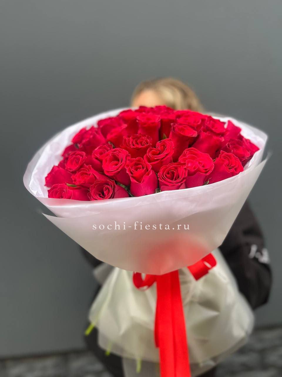 15 роз сорта джумилия, лента, дизайнерская упаковка.