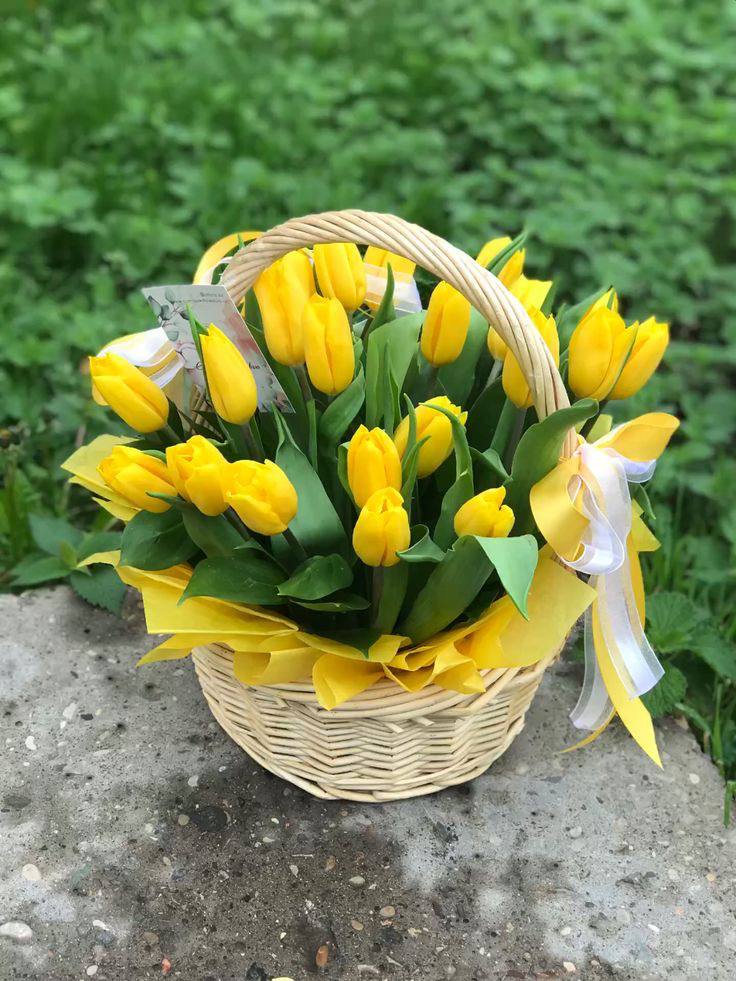 желтые тюльпаны в корзине.