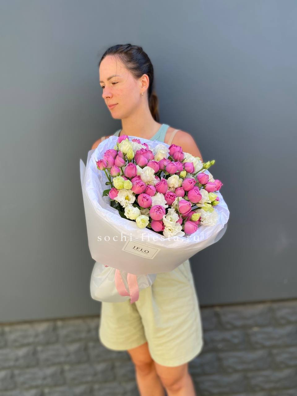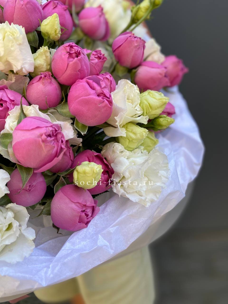 Для заказа товара "Букет "Розы с эустомой"" с доставкой в Симферополи нажмите в корзину