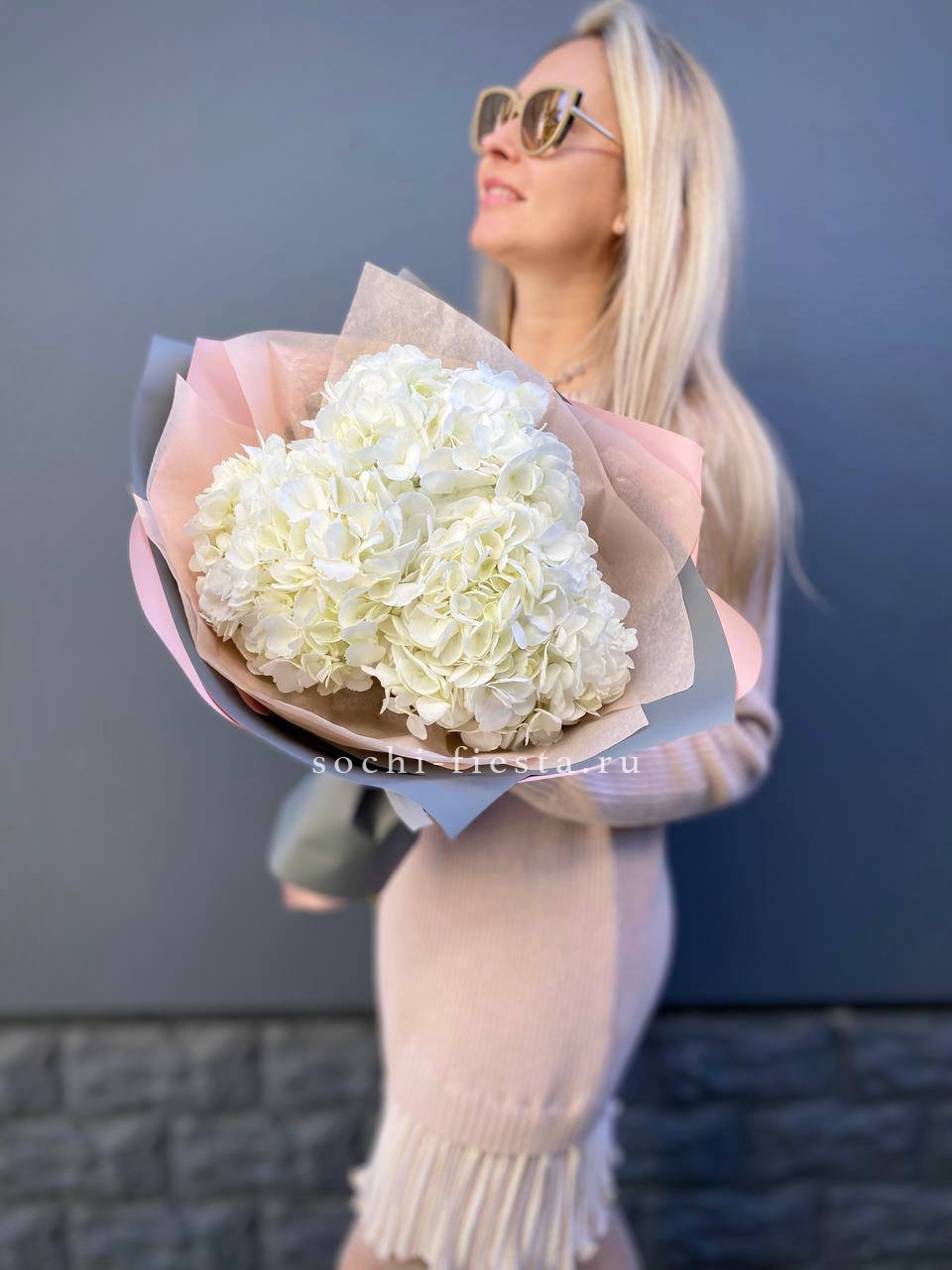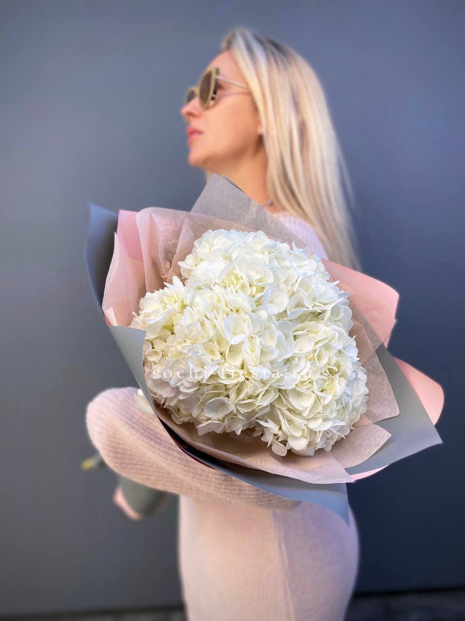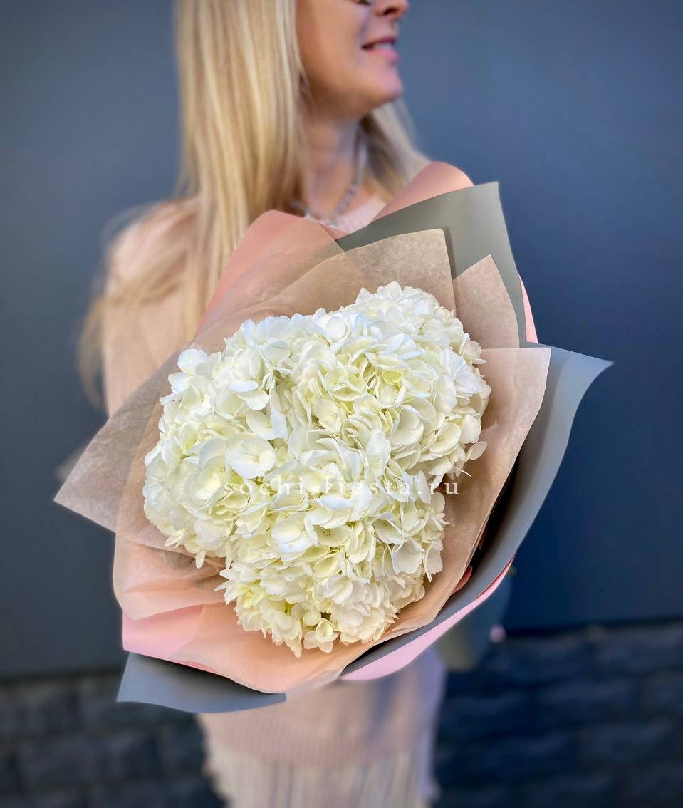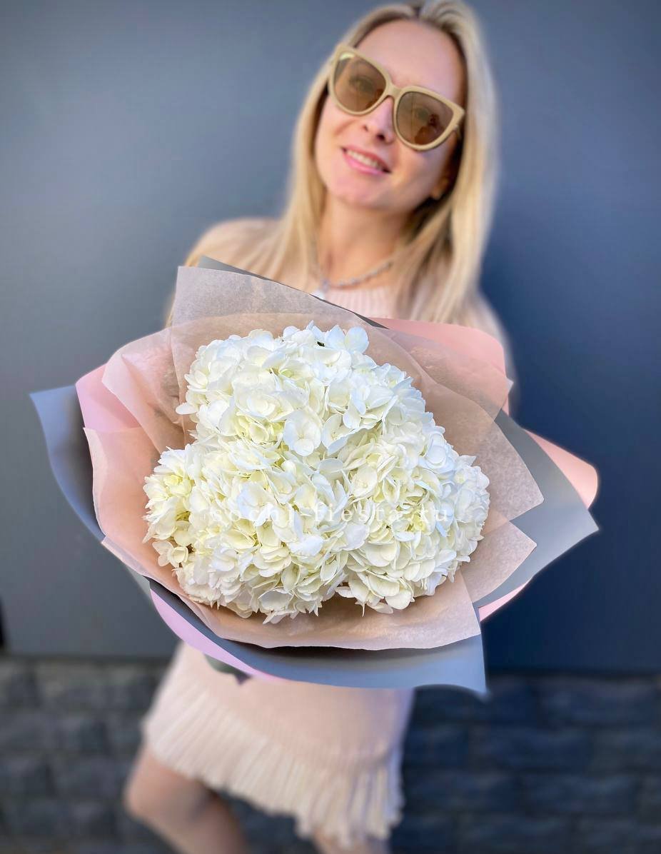 Для заказа товара "Букет из трёх белых гортензий" с доставкой в Симферополи нажмите в корзину