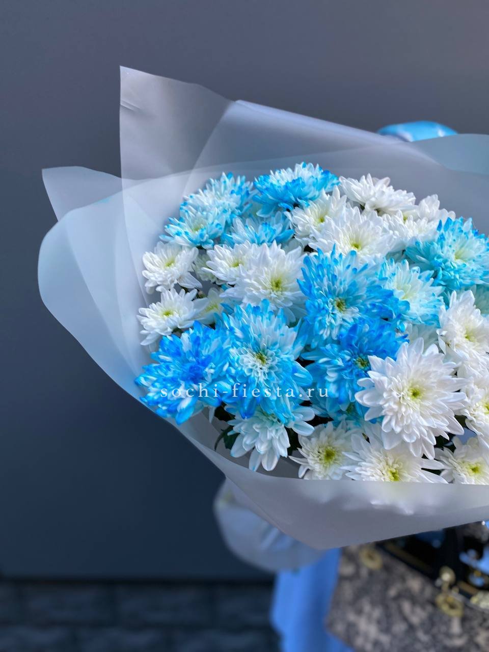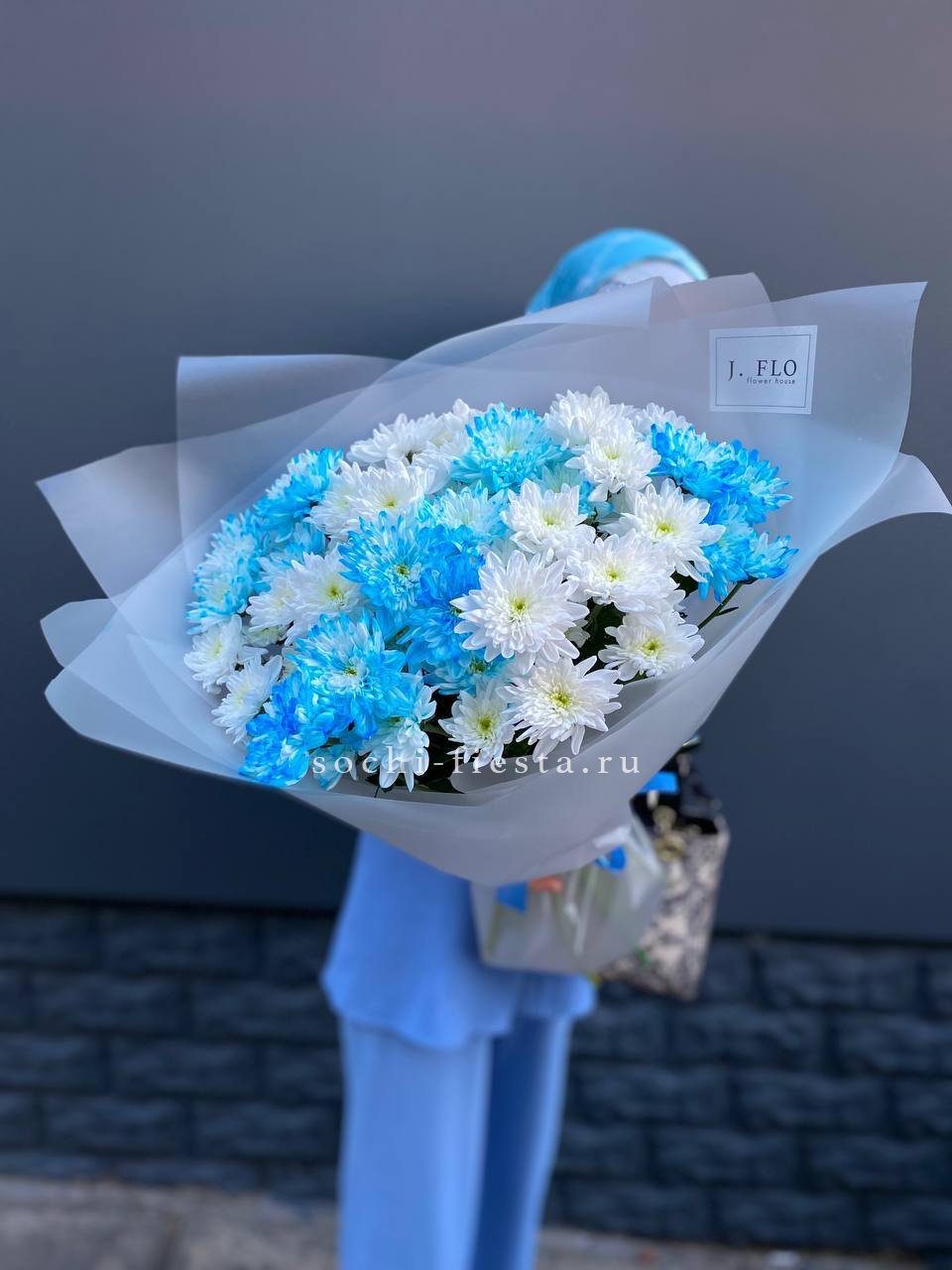 15-17 веток кустовых хризантем (белая + розовая), фоамиран, дизайнерская пленка.