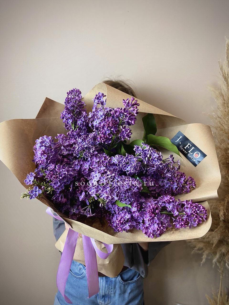 сирень - 5 веток, дизайнерское оформление, лента.