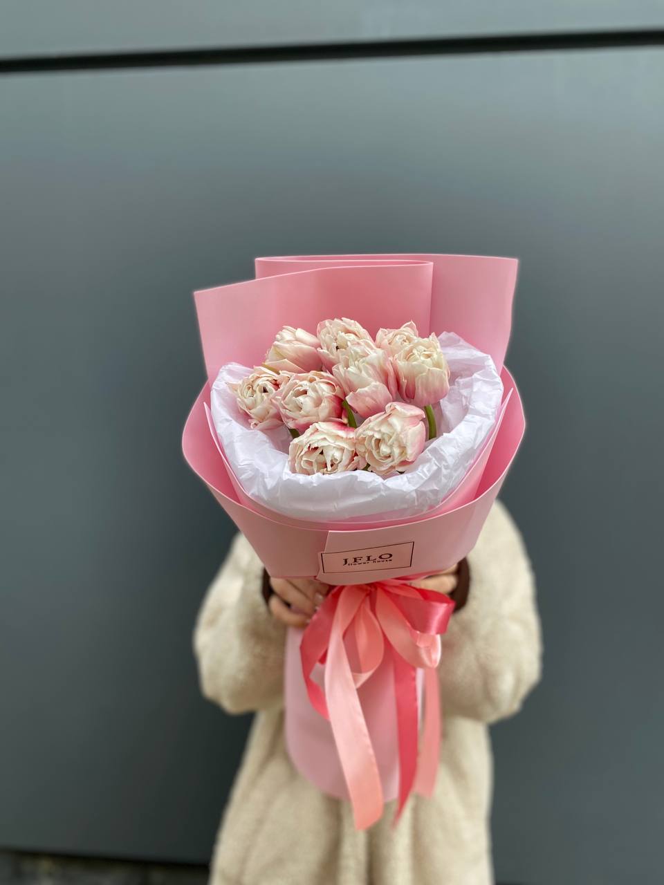 нежные тюльпаны в розовом оформлении.