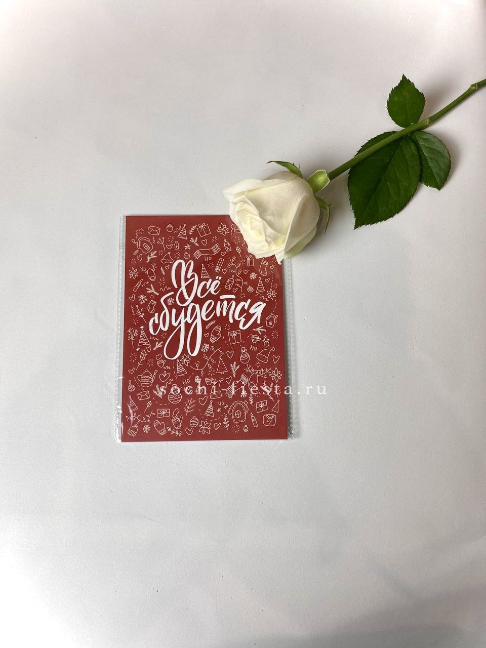 открытка для новогодних праздников идет дополнением к букету или композиции.