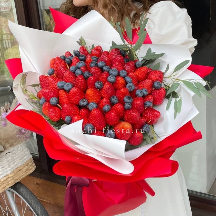 Ягодный букет в Симферополи — формат для тех, кто хочет удивить. Клубника на шпажках в виде цветочной аранжировки с голубикой и зеленью — это подарок, который обсуждают и фотографируют. В российских городах среднего размера этот формат пока встречается нечасто — и именно поэтому флорист, умеющий его делать, выделяется среди конкурентов и запоминается клиентам.