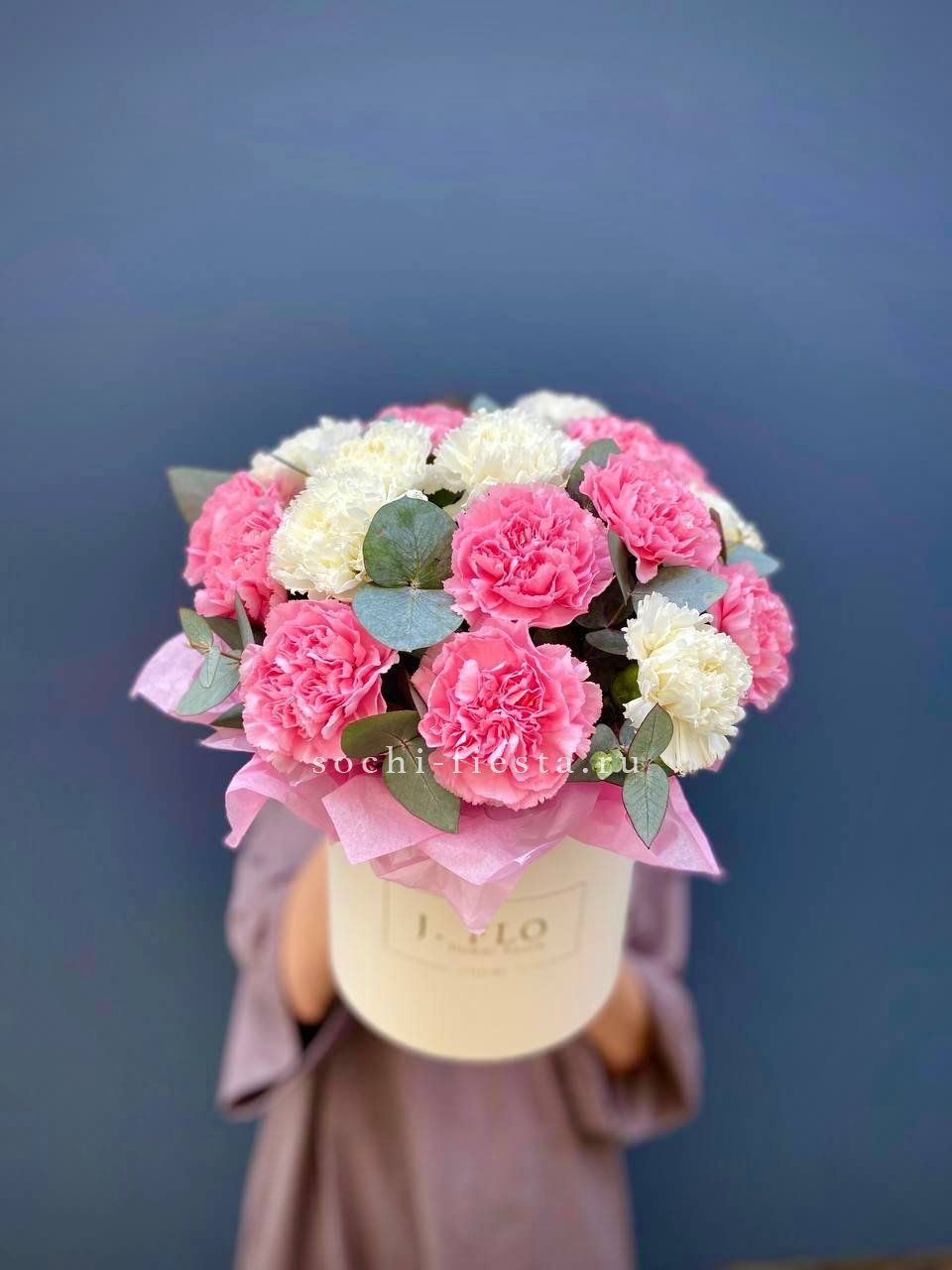 Розы, герберы и пышные соцветия гортензии в розово-голубой гамме наполняют бокс свежестью и легкостью. Каждый цветок раскрывается по-своему, создавая многослойную композицию. Готовое решение для яркого момента.