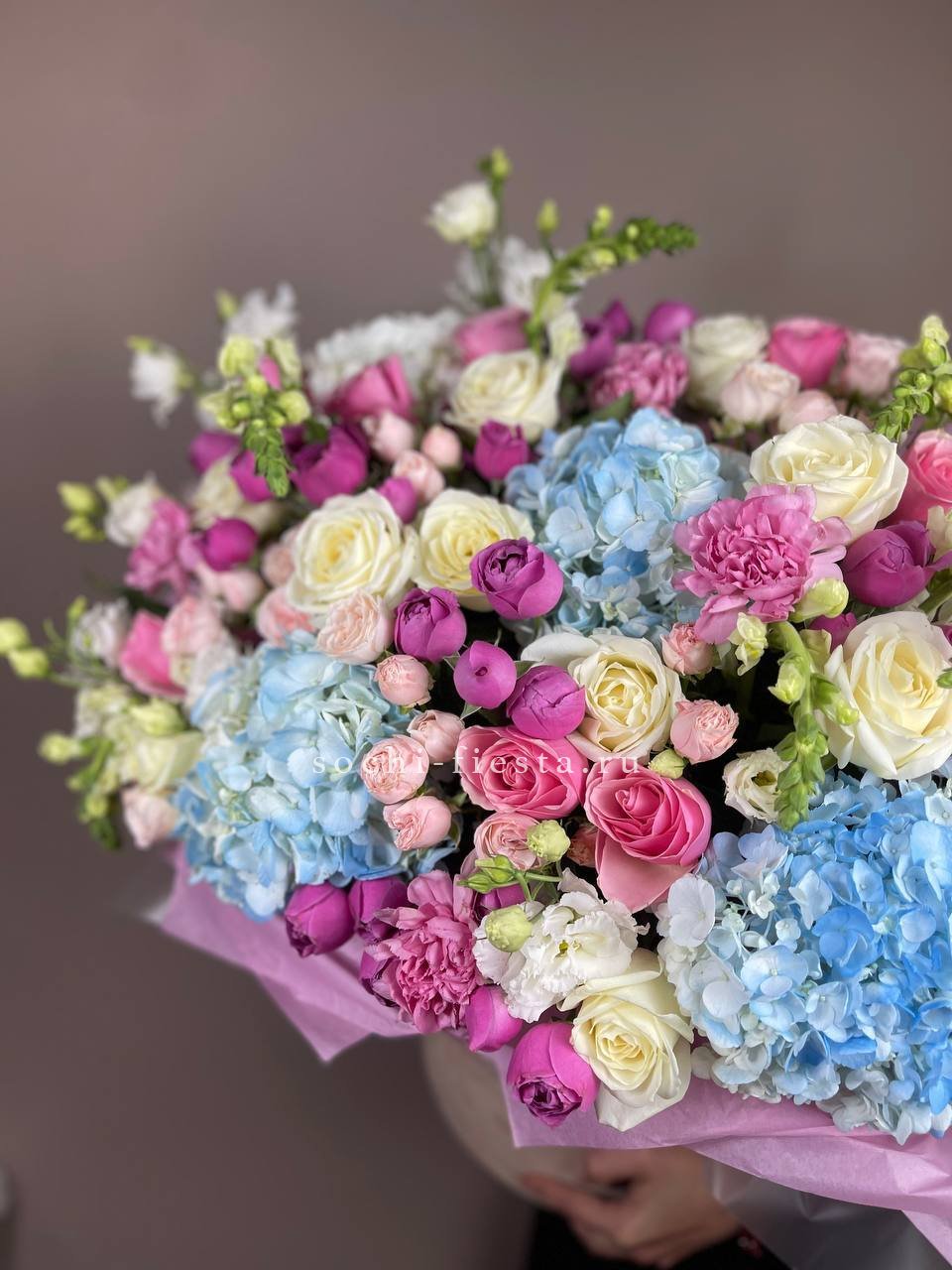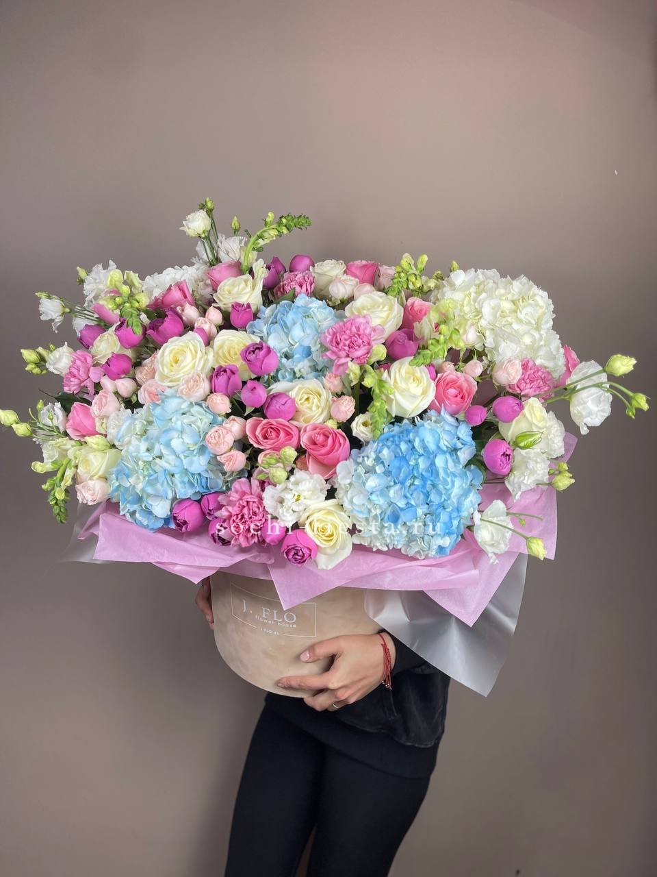 пионовидная кустовая роза, гортензия, бокс D20.