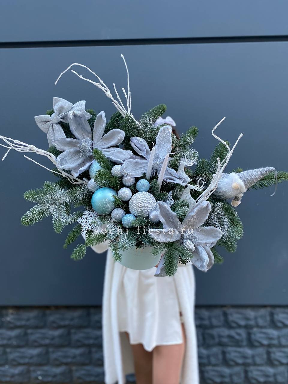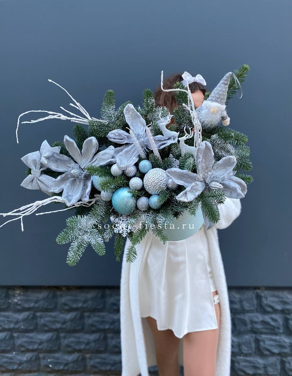 нобилис, цилиндр, оазис, свечи, новогодние игрушки, декор ВНИМАНИЕ! Готовая композиция (декор) может иметь незначительные внешние отличия от примера на фотографии.