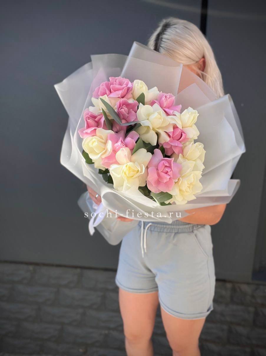 Для заказа товара "15 бело-розовых роз" с доставкой в Симферополи нажмите в корзину