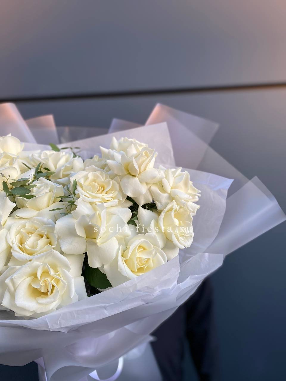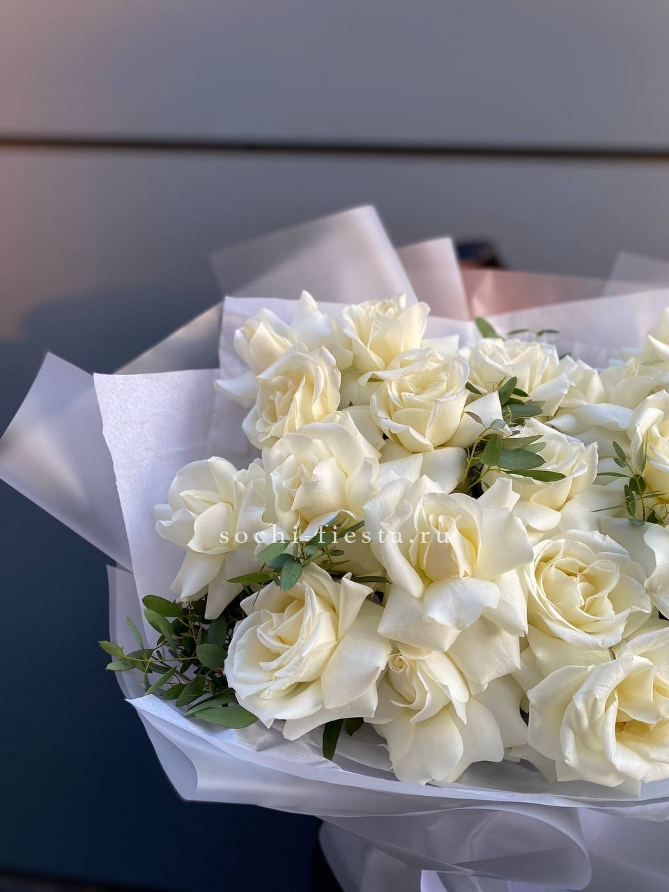 Для заказа товара "Пышный букет из белых роз" с доставкой в Симферополи нажмите в корзину