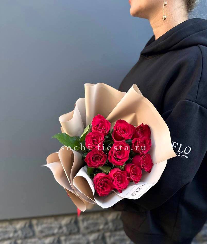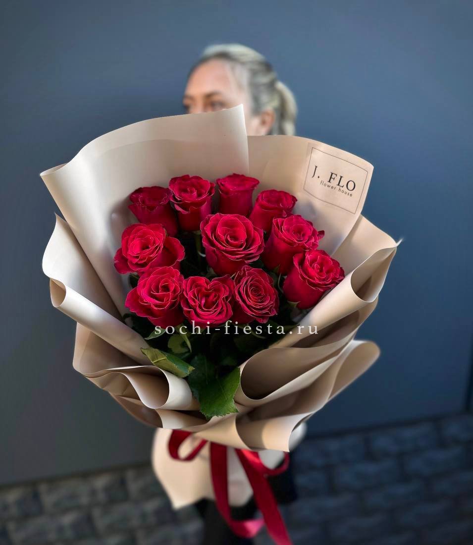 красная роза, лента, крафт (или пленка по желанию покупателя).