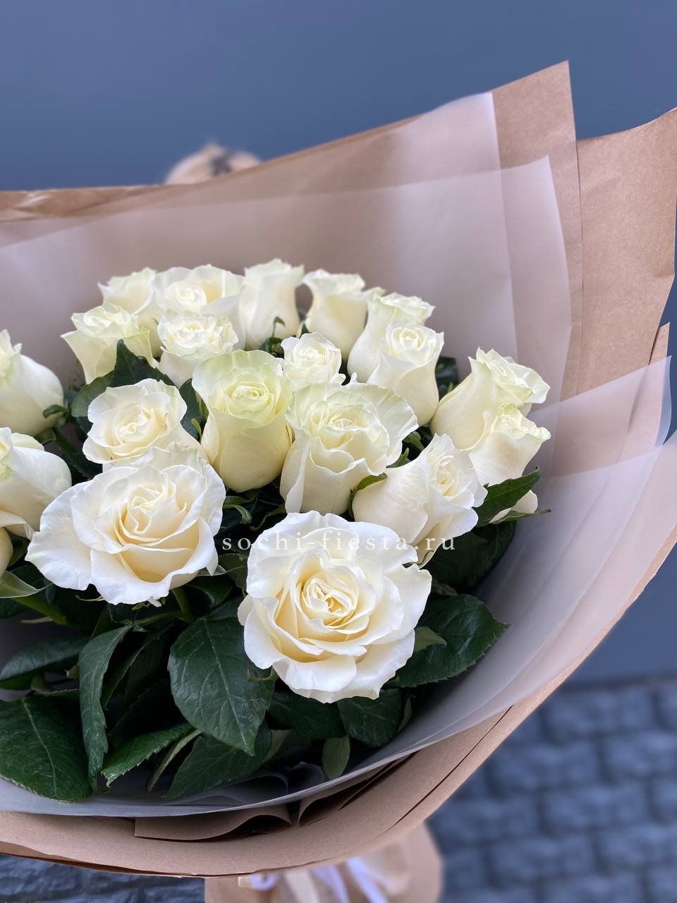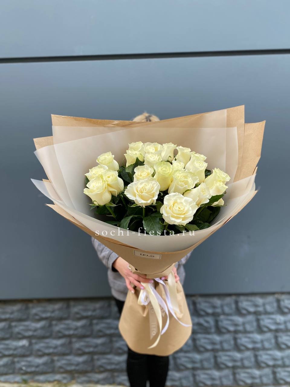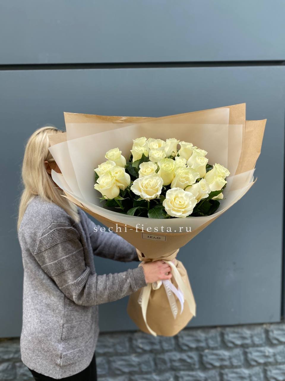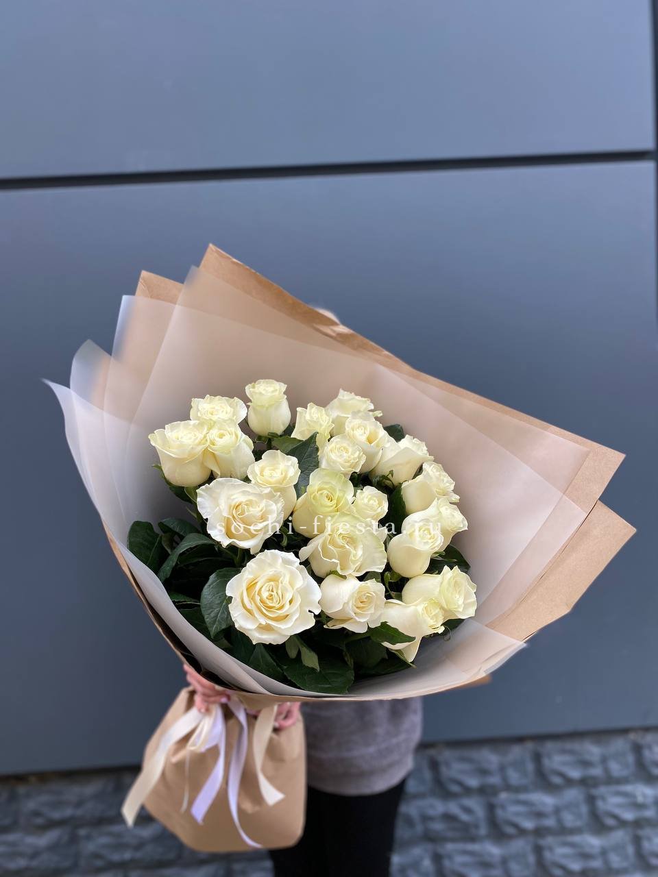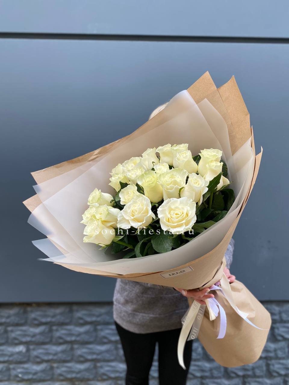 Для заказа товара " Букет высоких белых роз " с доставкой в Симферополи нажмите в корзину
