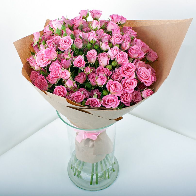 пионовидная кустовая роза Porcelain Lace/бомбастик - 15 шт., лента, авторская упаковка.