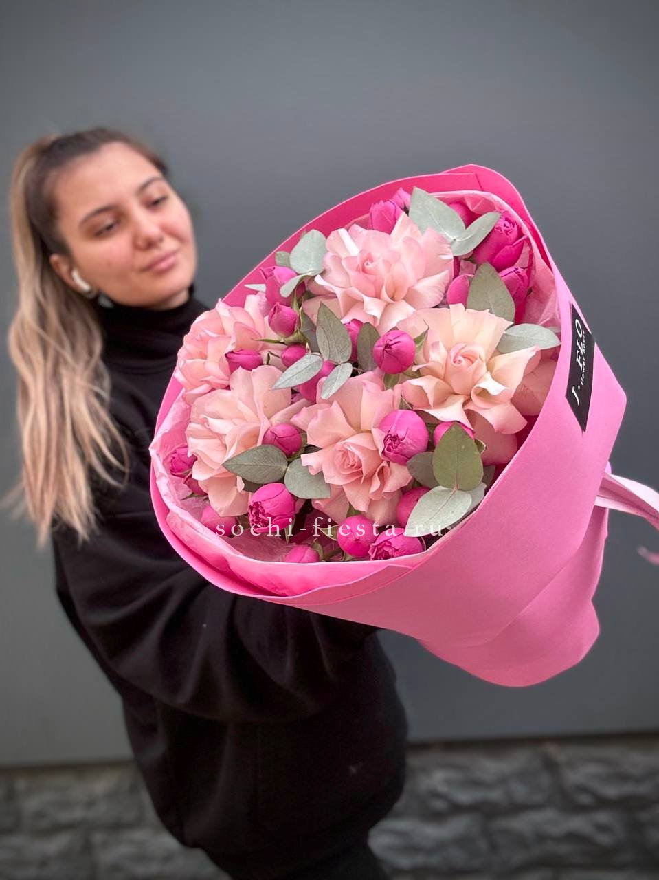Для заказа товара "Букет французских и пионовидных роз "Ламиносо"" с доставкой в Симферополи нажмите в корзину