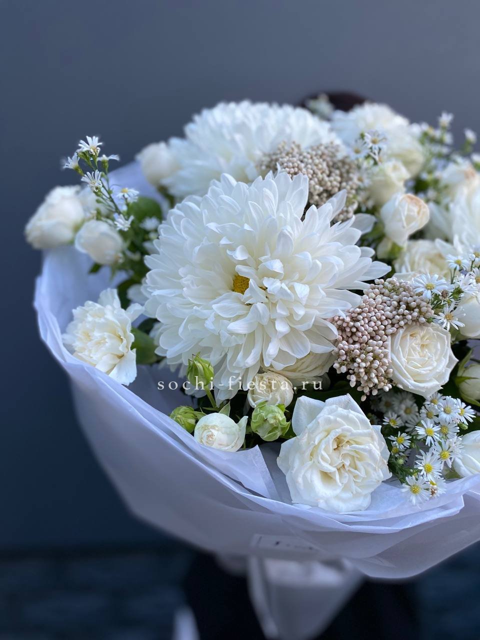 Для заказа товара "Букет хризантем и роз вайт шотс" с доставкой в Симферополи нажмите в корзину