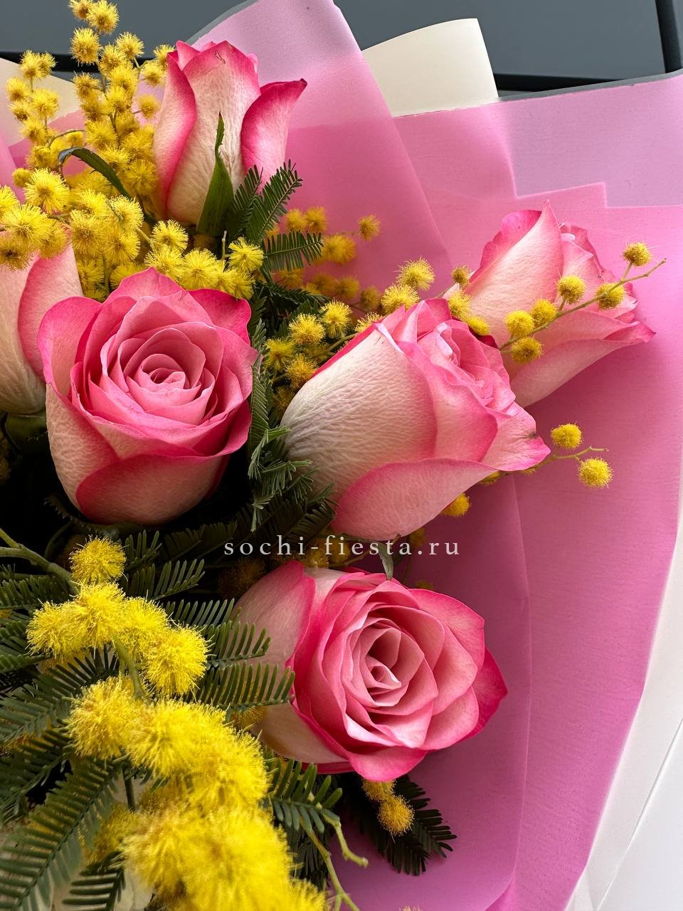 мимоза, герберы, розы Венди.