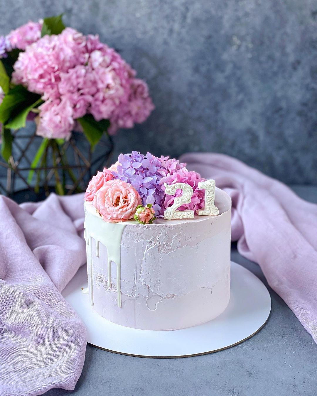 Золотые сердца на белоснежной поверхности задают графичный ритм композиции. Двухкилограммовый торт впечатляет объемом и предлагает три варианта начинки на выбор. Декор включен и продуман до мелочей.